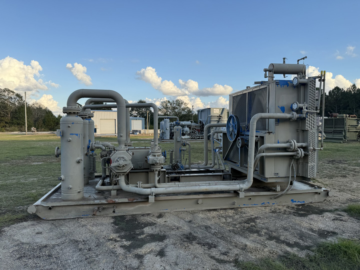 Unit was originally packaged with a Caterpillar G3406NA engine but it has been pulled. It can be rebuilt with a replacement engine or converted to an electric package if desired. Originally packaged in 2012, three cooler sections were changed out in 2020 to allow for higher discharge pressures. The compressor frame rolls freely 360 degrees.